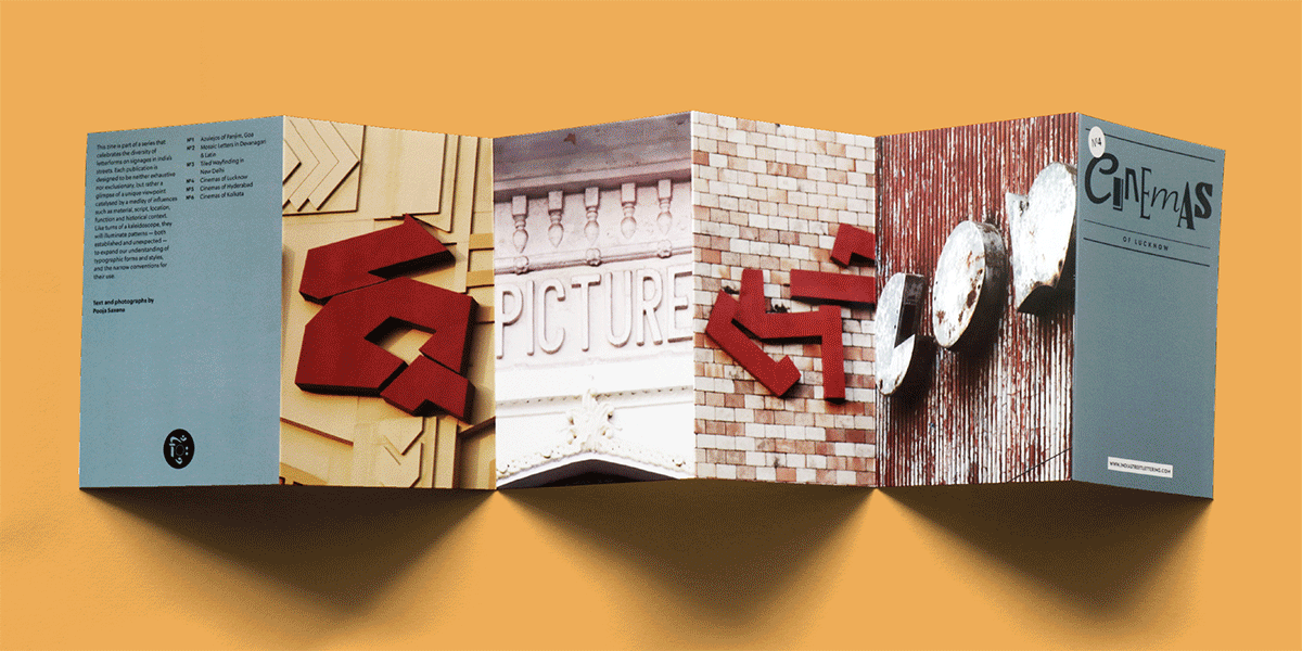 The theme of each zine bundle is catalysed by a medley of influences such as material, script, location, function and historical context. Since 2023, two batches have been published: the first focused on the use of tiles in street lettering, and the second features cinema signs from Lucknow, Hyderabad and Kolkata.